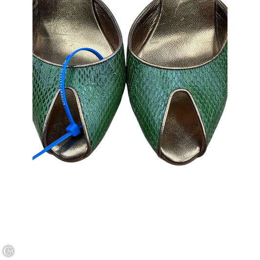 Sandals Luxury Designer By Gucci In Gold & Green, Size: 7.5