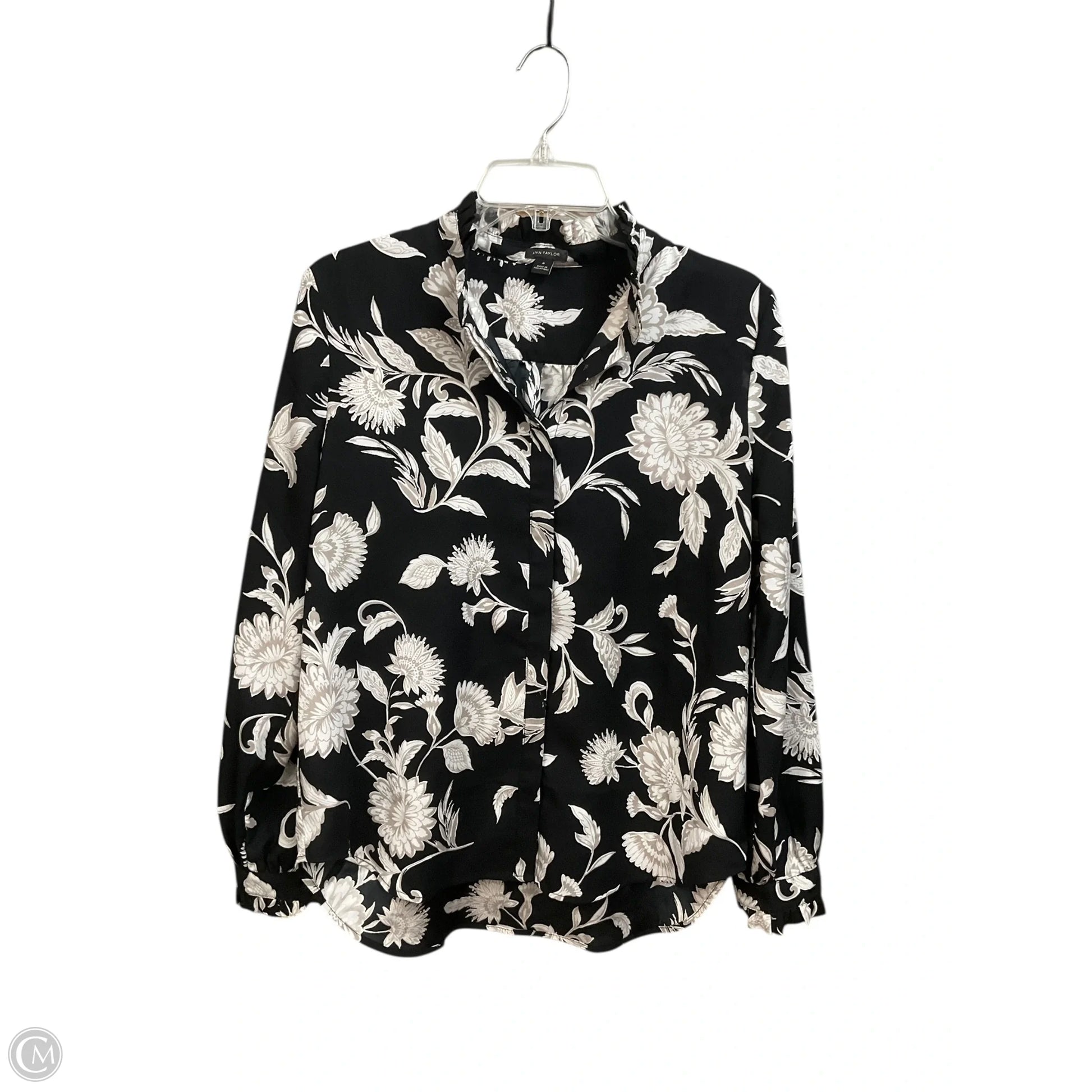 Blouse Long Sleeve By Ann Taylor In Black & Tan, Size: M