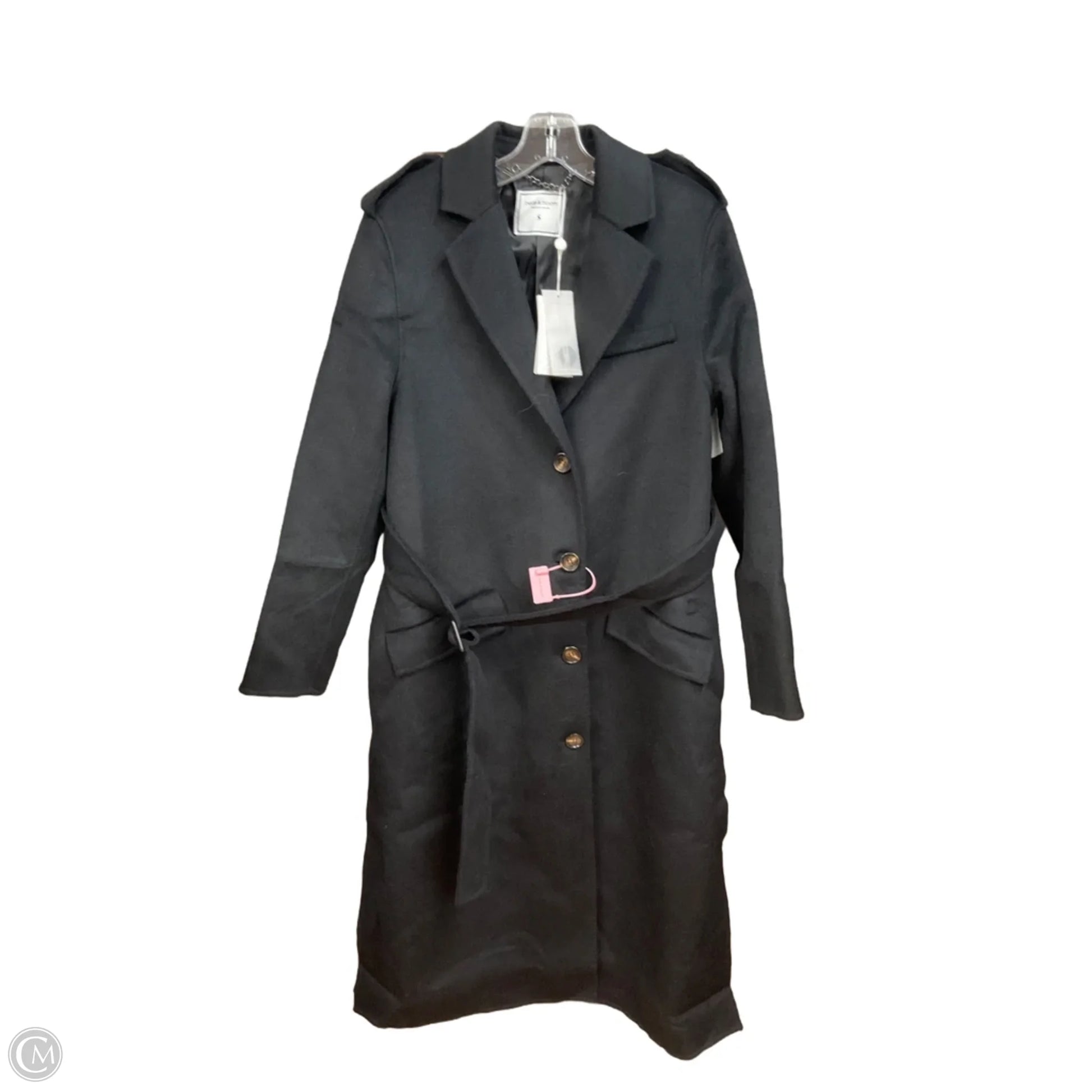 Coat Trench Coat By Clothes Mentor In Black, Size: S