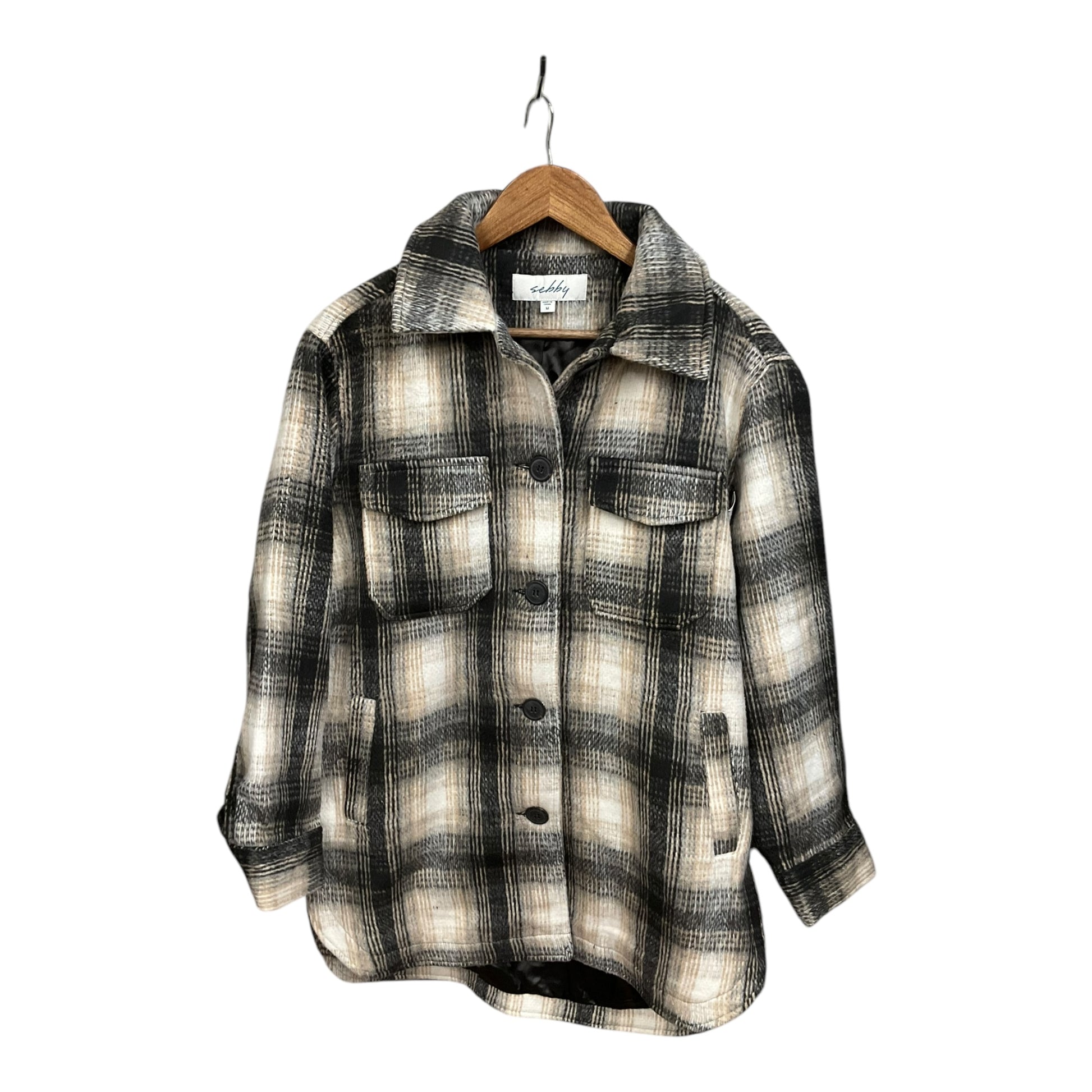 Jacket Shirt By Sebby In Plaid Pattern, Size: M