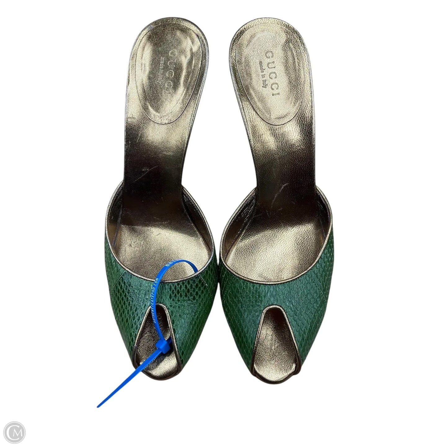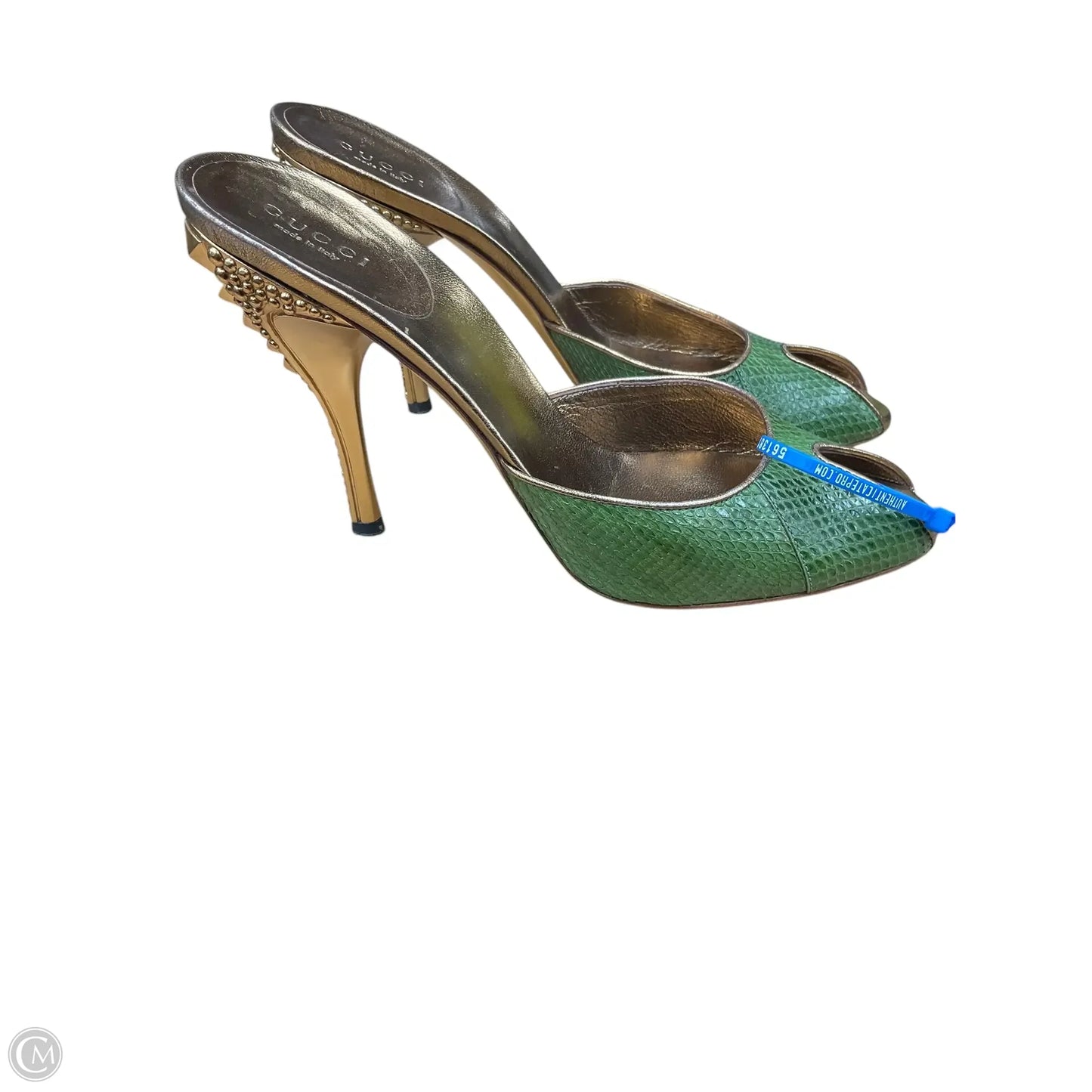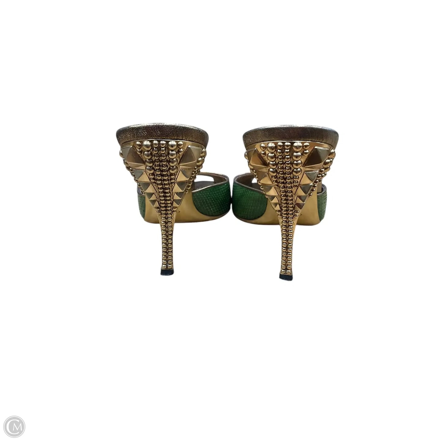 Sandals Luxury Designer By Gucci In Gold & Green, Size: 7.5