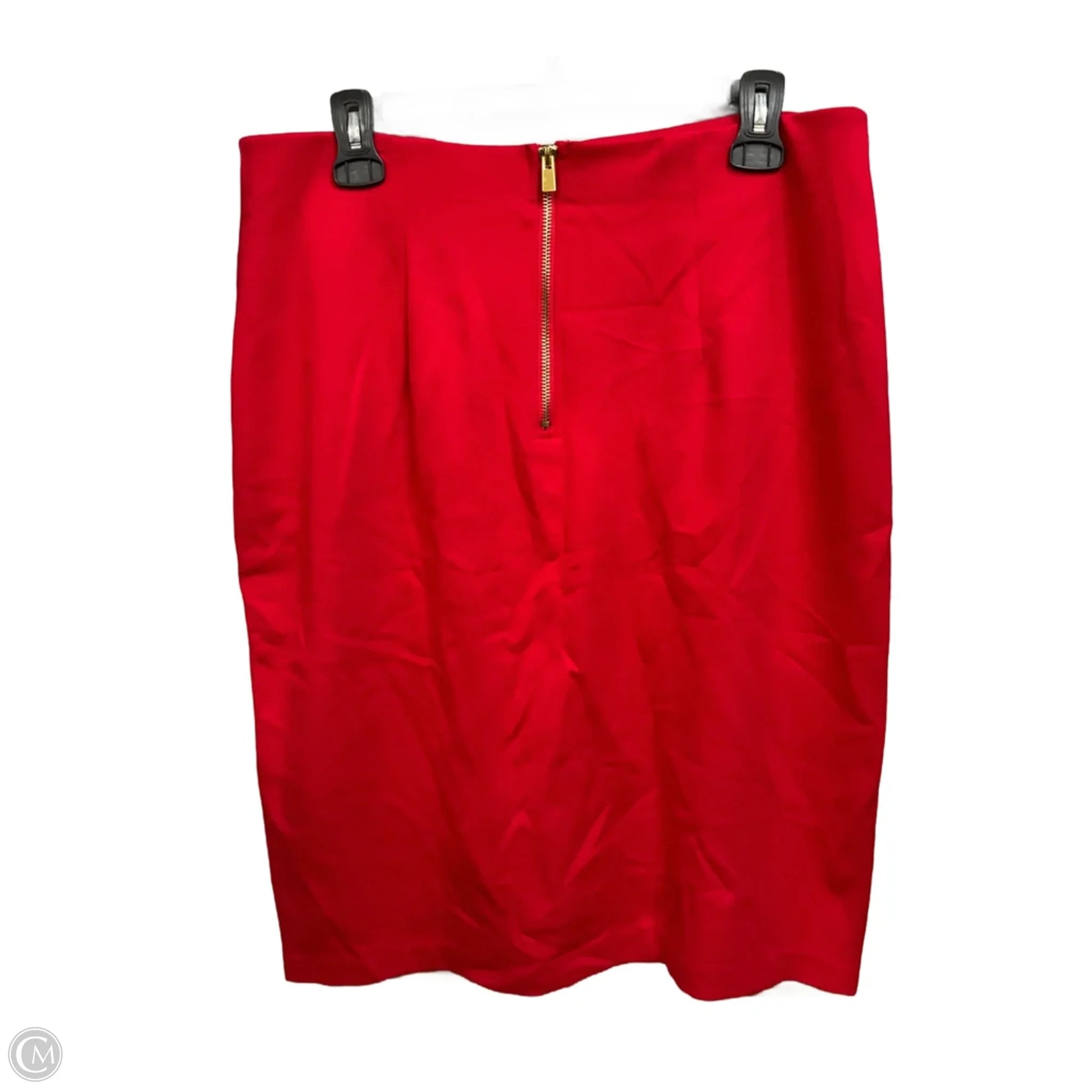 Command attention in fiery red midi skirt, size 12.