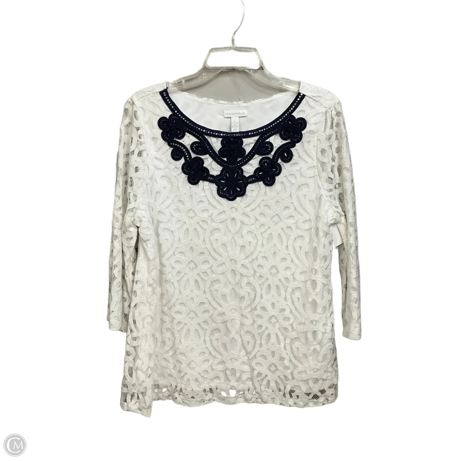 Top 3/4 Sleeve By Charter Club In White, Size: L