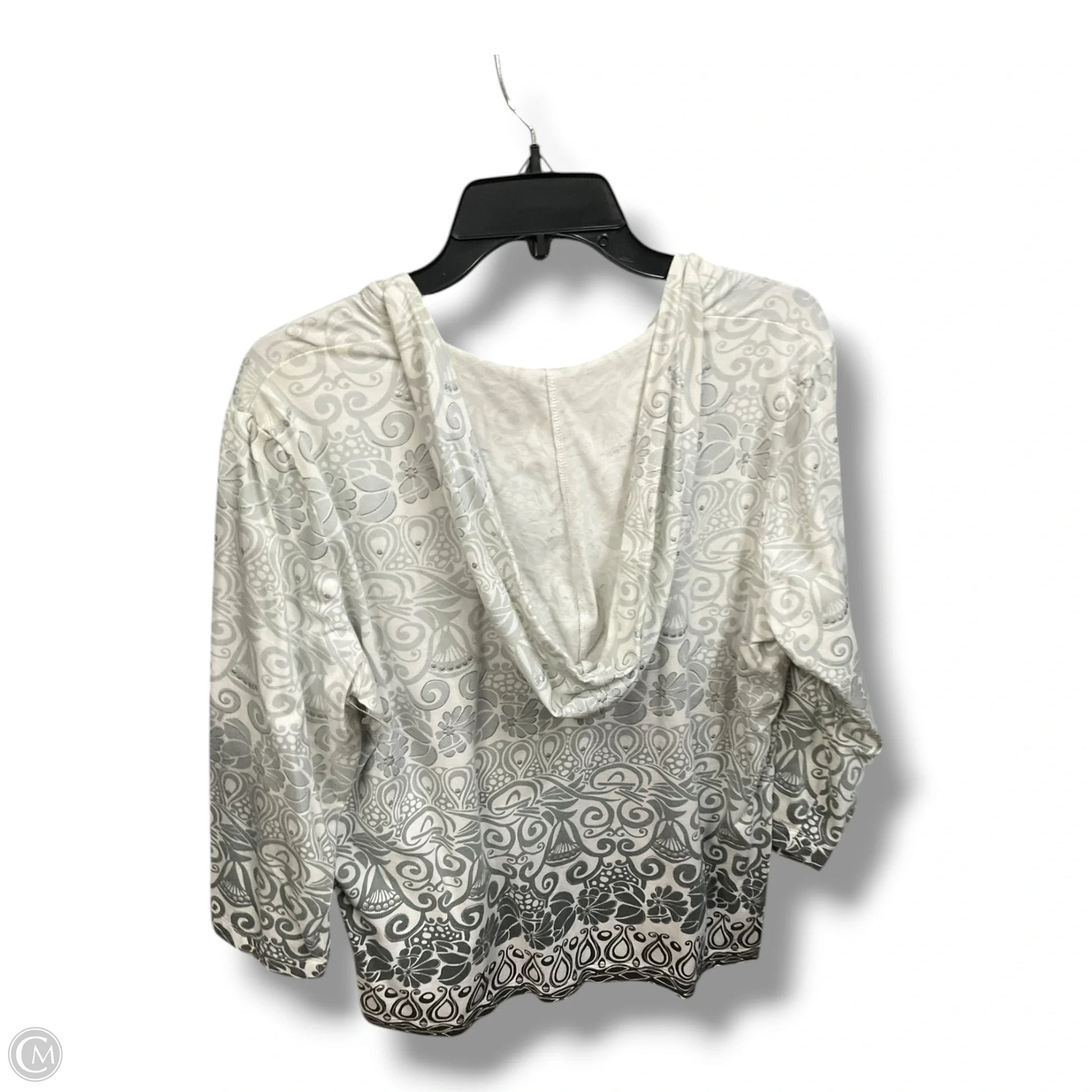 Top 3/4 Sleeve By Chicos In Grey & White, Size: Xl